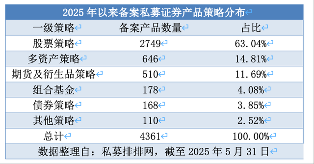 与此同时,2025年前五个月中国私募证券行业呈现显著增长态势,发行明显回暖。私募排排网数据显示,截至5月31日,全行业年内累计备案私募证券产品达4361只,较去年同期实现45.03%的显著增长。
