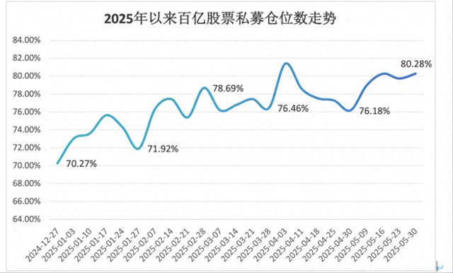 私募排排网数据显示,截至5月30日,百亿私募仓位指数已达80.28%,较4月末显著提升4.1%。